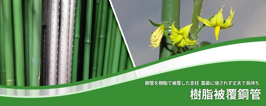 鋼管を樹脂で被覆しているので、農薬に侵されず丈夫で長持ちします。商品によっては「つる」が巻きやすくするため数cm間隔で節のような突起を付加しています。