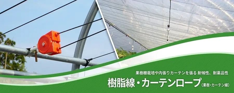 ポリエステル樹脂 鉄線の2倍の強度 針金の約1/6の軽さ ビニールハウスの内張り、誘引線、カーテン吊り線ハウスの補強線材
