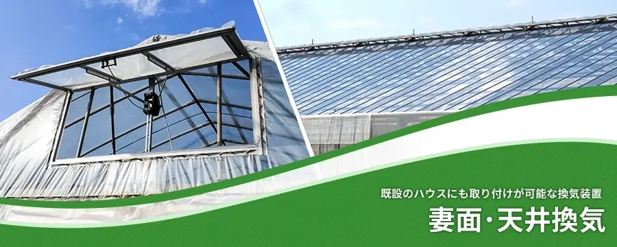 | 大型ハウスに最適なツマ面換気装置(開口幅3m) | ||