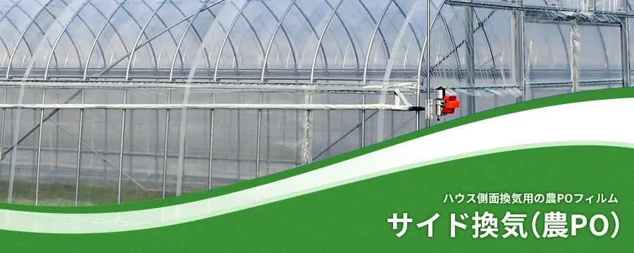 サイド換気(農PO) 農業用ポリオレフィン サイド換気 ハウスのサイド及び妻面の換気用農POフィルム。巻き上げ装置や防虫ネットなども併用して設置することが可能です。 一般的な農ビを使った場合、巻き上げ時のベタつきの影響で巻き上げる作業が大変ですが、専用品はベタつきを軽減し、巻き上げ作業を容易にしてくれます。 製造元・発売元及び製品名 製造・発売元 製品名 特徴 厚み(mm) ダイヤテックス株式会社 テルエースクリスタル クロス補強による強度と耐久性 ベタツキ少ない 防霧性 約0.2 兼弥産業株式会社 楽巻クロス(巻取用フィルム) 三層構造のクロスフィルム 丈夫 破れにくい 0.15 同じ用途や類似する製品群 サイド換気用(農ビ) 使用上の注意点 硫黄薫煙は農POフィルムに悪影響を与える可能性がありますので注意が必要です。 展張期間は商品や使用場所、自然環境により大きく変わります。 作物によって紫外線の透過が大きく関係します。詳しくはメーカーやお近くの取扱店でおたずね下さい。 ここにアイテムを追加するには?