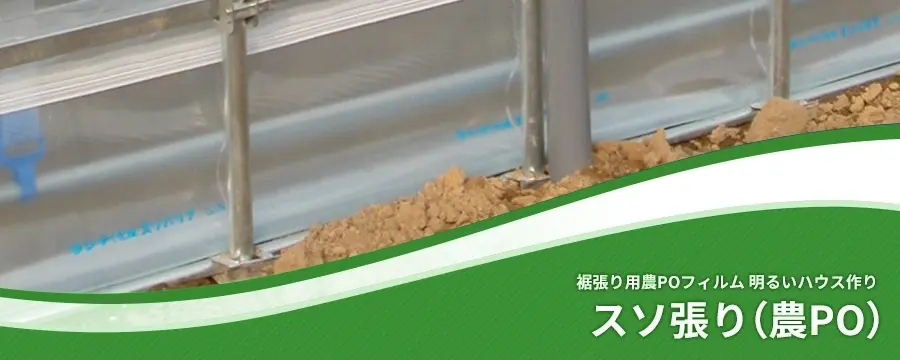 ハウスの裾部分(土に触れる箇所)に利用します。農ビ製品と比べて地際の劣化が少ないので耐久性が比較的高めです。