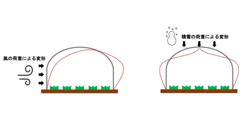 ハイテンパイプを農業用ビニールハウスに実際に使用してみると、パイプが思ったより”しなる”ので、「本当に強いのか?」と疑問に感じた事はありませんか?