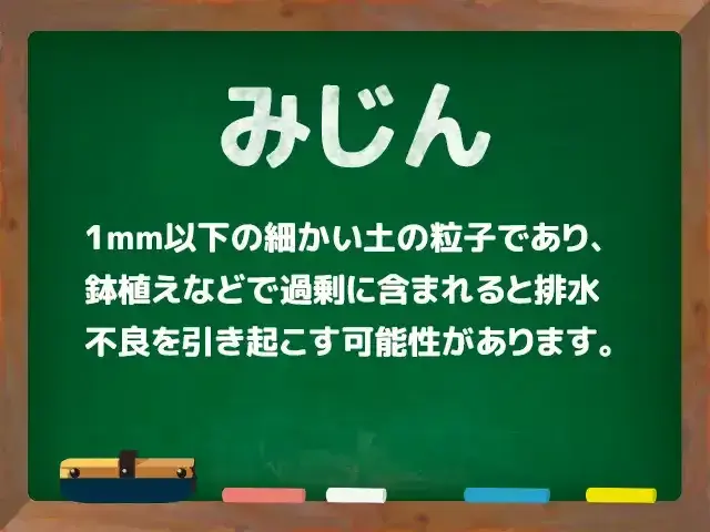- 通気性の低下: みじんが過剰に含まれると、土壌の通気性が悪くなり、根が酸素不足になる可能性があります。 対処方法: 通気性を確保するために、適度なみじんの割合を保つようにします。