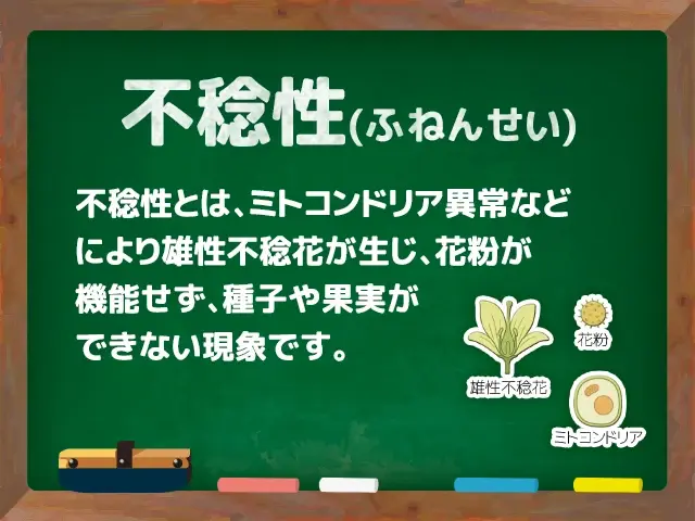 不稔性は、自然発生的な突然変異や遺伝子の組み換え、あるいは環境要因によって引き起こされることがあり、栽培管理や交配設計において慎重な対応が求められます。