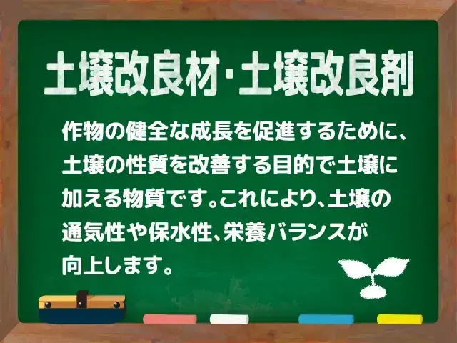 土壌改良材・土壌改良剤(どじょうかいりょうざい)とは、作物の健全な生育を促進するために、土壌の物理的、化学的、生物的性質を改善する目的で土壌に加える物質のことを指します。