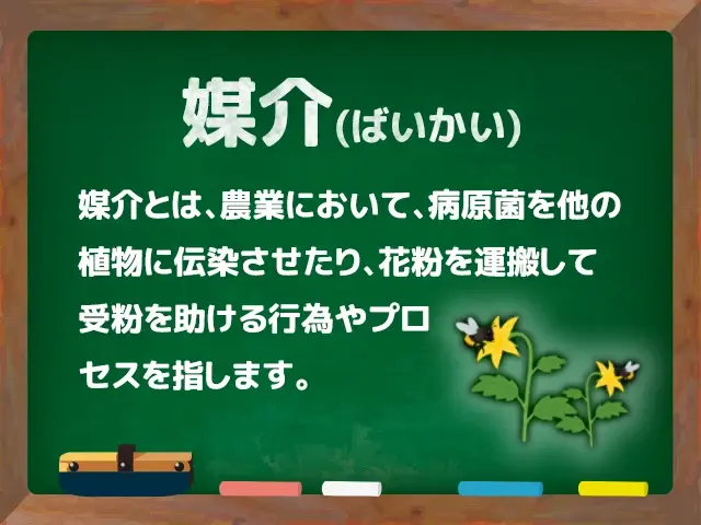 媒介(ばいかい)とは、農業において、病原菌を他の植物に伝染させたり、花粉を運搬して受粉を助ける行為やプロセスを指します。