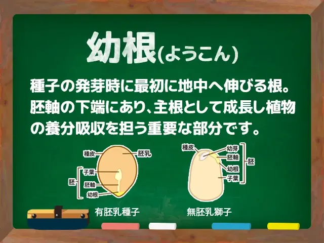 幼根は、種子の発芽に伴い最初に発達する根の構造で、植物が自力で栄養を吸収する最初の器官です。