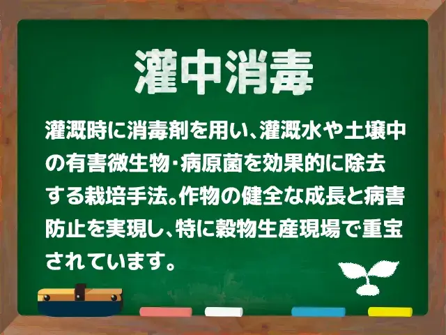 灌中消毒(かんちゅうしょうどく)とは、農業現場において灌溉(かんがい)の過程を活用し、消毒剤を水に混合して土壌や作物周囲の病原菌、ウイルス、真菌(しんきん)などの有害微生物を除去する技術です。 この手法は、従来の表面消毒や散布型消毒と異なり、灌溉システムを介して均一かつ広範囲に処理を行うことができるため、病害の発生リスクを大幅に低減させ、作物の健全な生育環境の確保に寄与します。