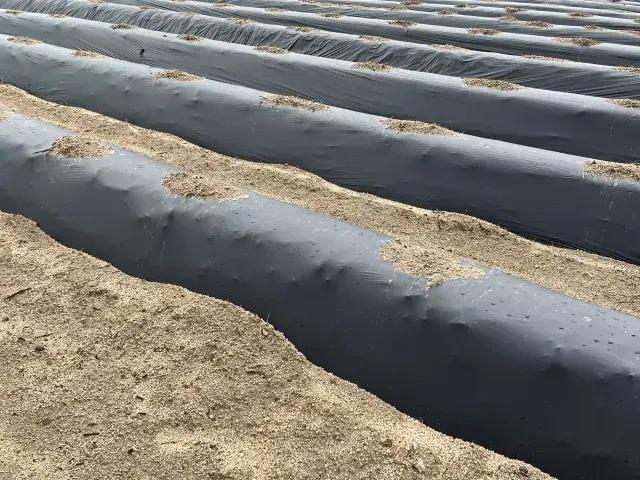 畝に張られた黒マルチ