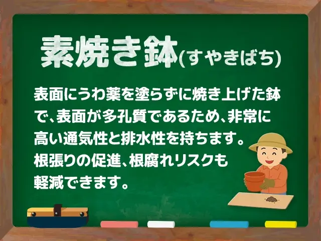 - 機能:通気性と排水性に優れる。鉢自体が水分を呼吸する。