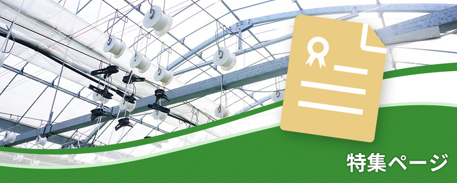 特集ページ 生産者取材 「植物の力を引き出し、効率よい経営を」 生産者取材 株式会社カンジュクファーム 倉庫にも負けない強度で安心大和鋼管のSTXハウスを倉庫に活用する宇都宮大学付属農業 生産者取材 大和鋼管工業株式会社 メーカー取材 農家の意思決定をサポートし、収量アップに貢献するマルチフィルムを開発 メーカー取材 みかど化工株式会社 霧を用いた作物栽培の可能性・未来を作る革新技術 メーカー取材 株式会社いけうち